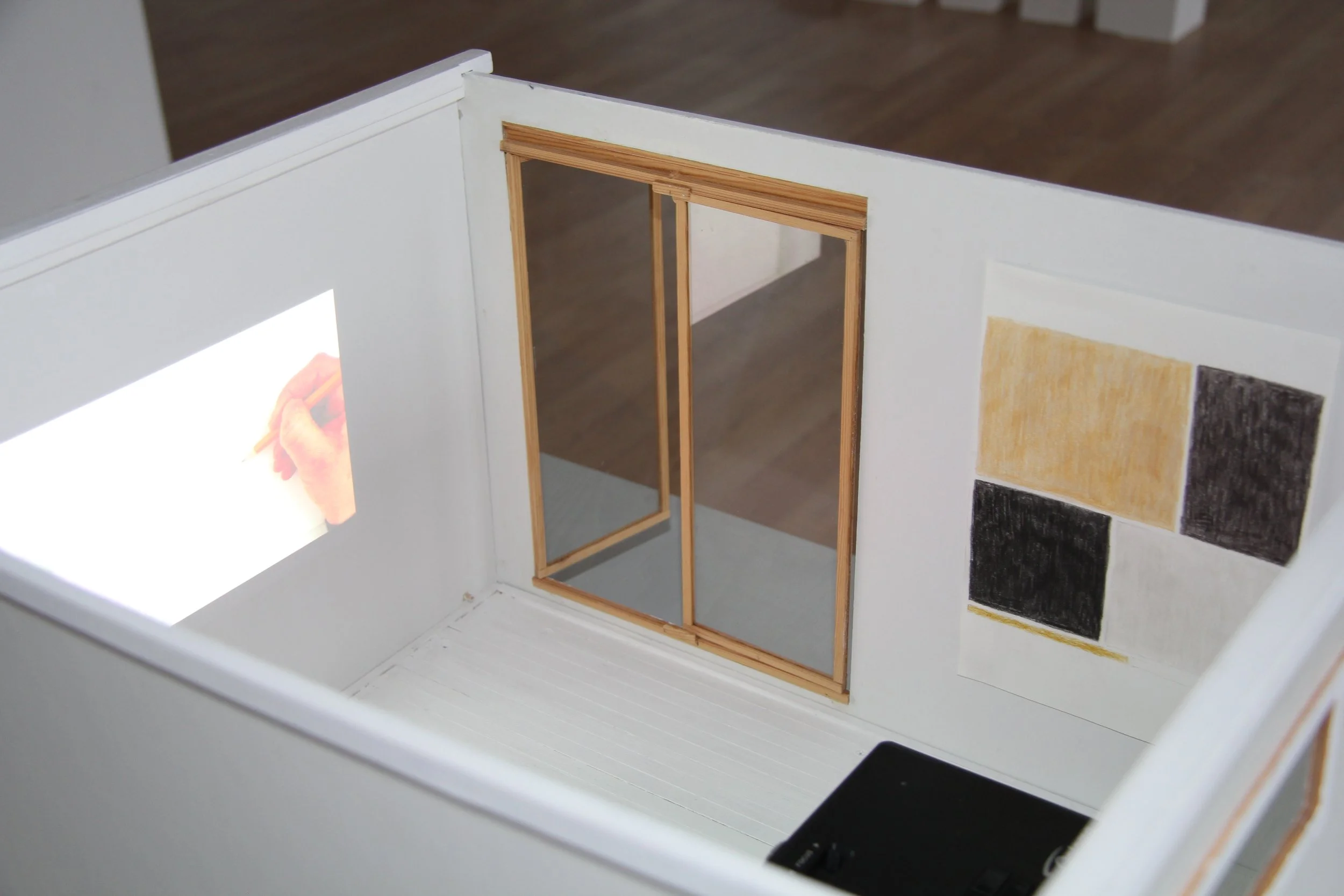 Miniature Gallery, papper, glas, karting, trä, video, gips, pigment,